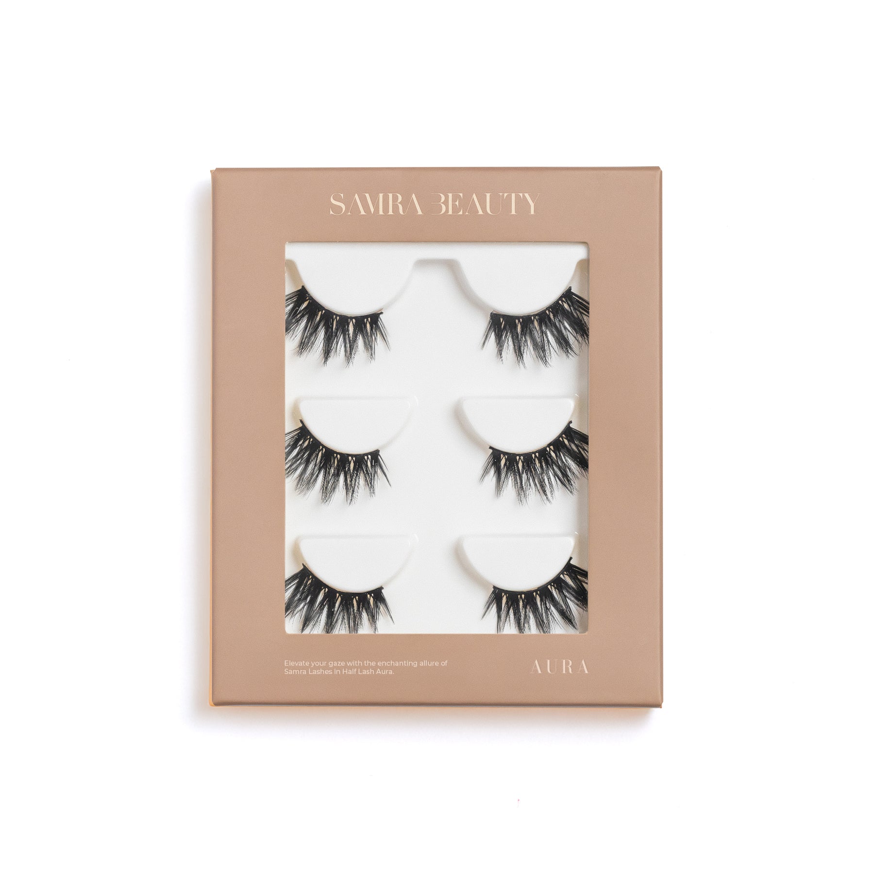 Elevate your gaze with the enchanting allure of Samra Lashes in Half Lash Aura. Handcrafted from luxurious silk fibers, these half lashes are designed to add a touch of glamour to your eyes, creating a captivating and sophisticated look that exudes confidence and charm.