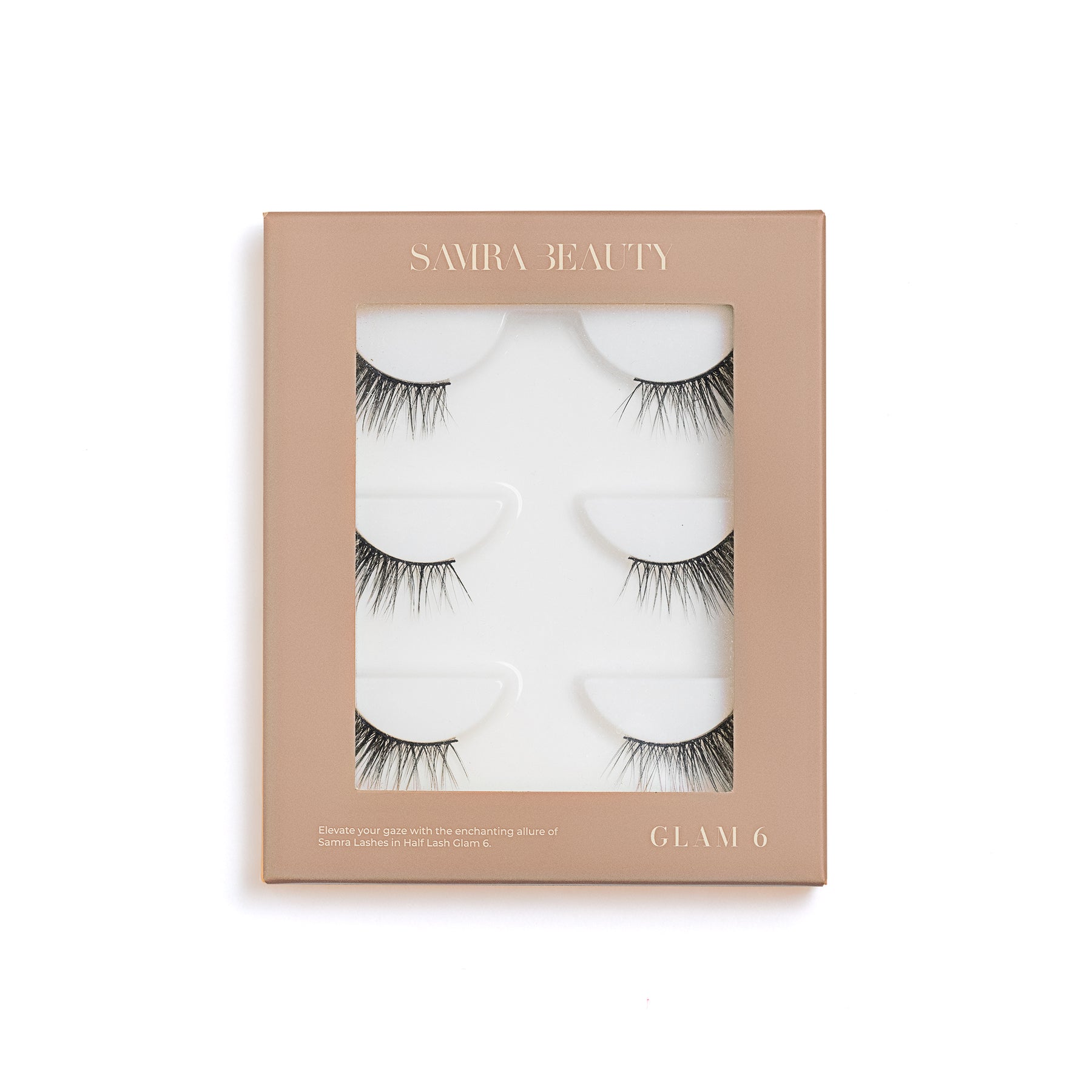 Elevate your gaze with the enchanting allure of Samra Lashes in Half Lash Glam 6. Handcrafted from luxurious silk fibers, these half lashes are designed to add a touch of glamour to your eyes, creating a captivating and sophisticated look that exudes confidence and charm.
